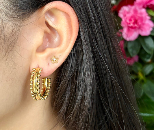 18ct Gold Plated Beaded Hoop Earrings