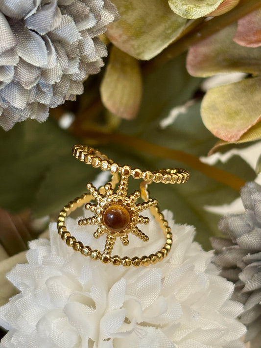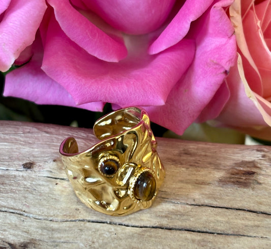18ct Gold Plated Adjustable Tiger's Eye Hammered Ring