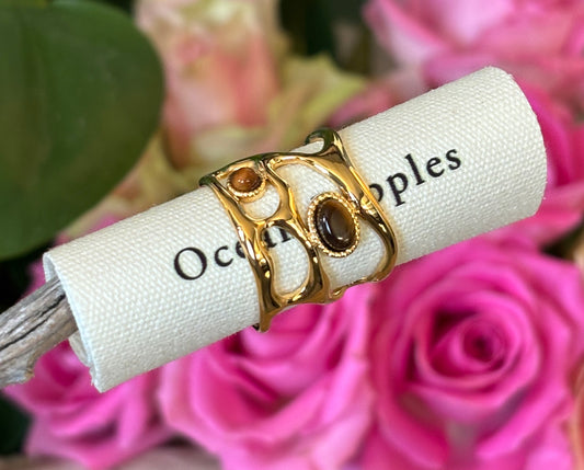 18ct Gold Plated Tiger's Eye Triple Band Ring