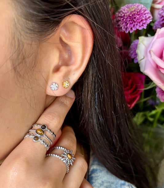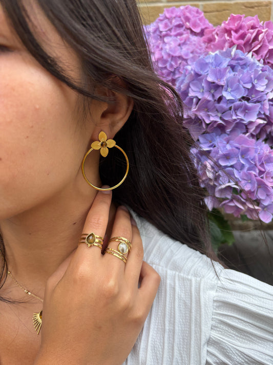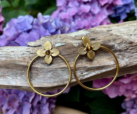 18ct Gold Plated Tiger's Eye Flower Hoop
