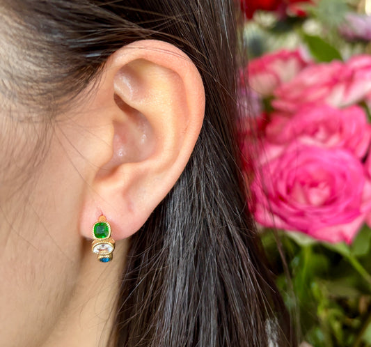 18ct Gold Plated Blue Green Cubic Zirconia Huggie Earrings