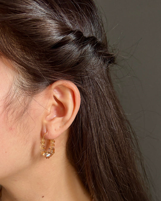 14ct Gold Plated Tea Brown Glass Chips Hoop Earrings