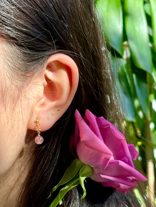 14ct Gold Plated Strawberry Quartz Drop Earrings