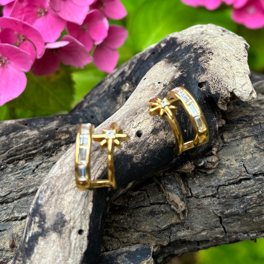 18ct Gold Plated Cubic Zirconia Fan Hoop Earrings