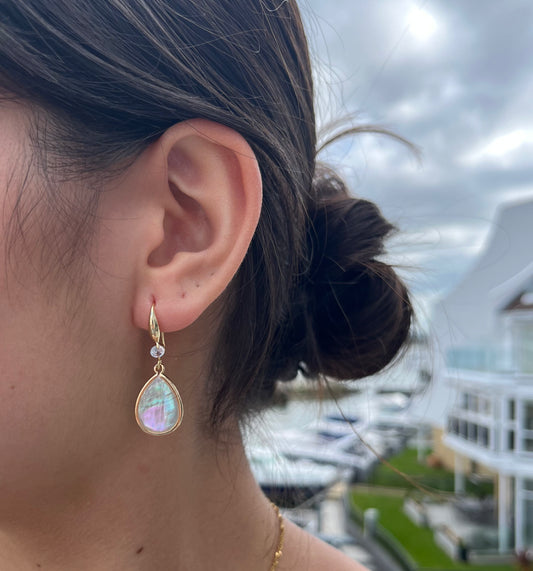 14ct Gold Plated Mother Of Pearl Drop Earrings