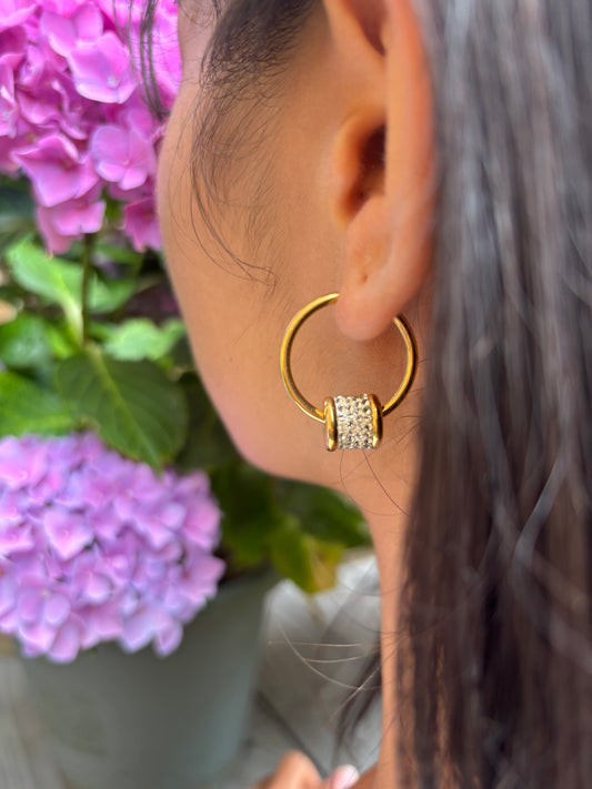 18ct Gold Plated Cubic Zirconia Colosseum Hoop Earrings
