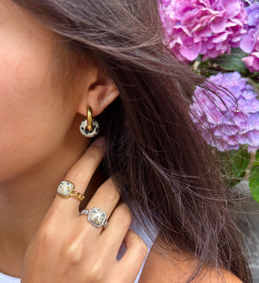 18ct Gold Plated Dalmatian Jasper Doughnut Earrings