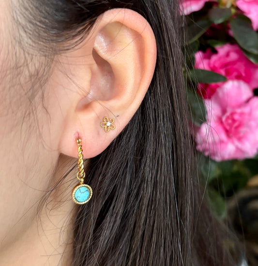 18ct Gold Plated Turquoise Twisted Hoop Earrings