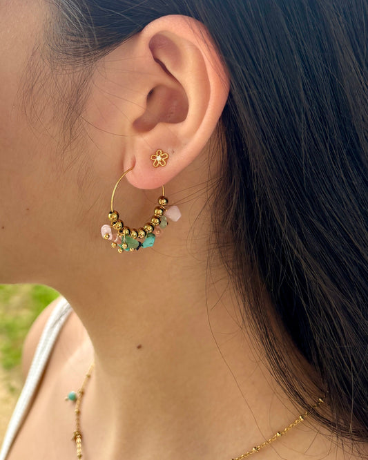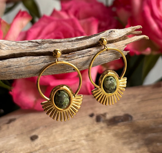 18ct Gold Plated African Turquoise Sunburst Hoop Earrings