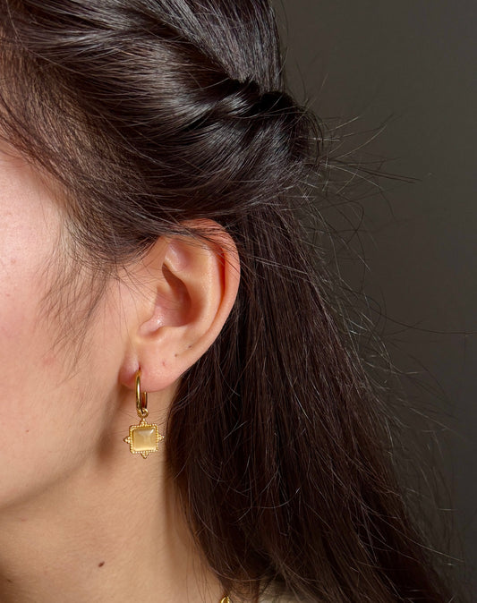 18ct Gold Plated Clear Quartz Square Drop Earrings