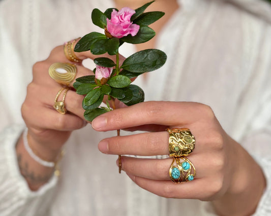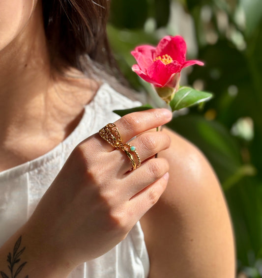 18ct Gold Plated Adjustable African Turquoise Hammered Ring