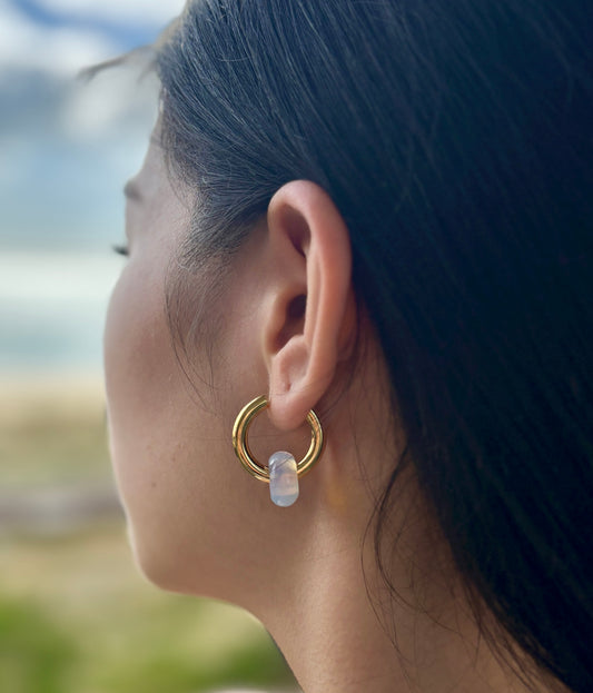 14ct Gold Plated Curved Cat's Eye Stone Earrings