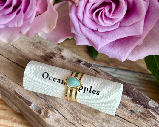 18ct Gold Plated Amazonite Drop Triple Band Ring