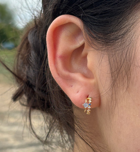 18ct Gold Plated Gemstone Cluster Hoop Earrings