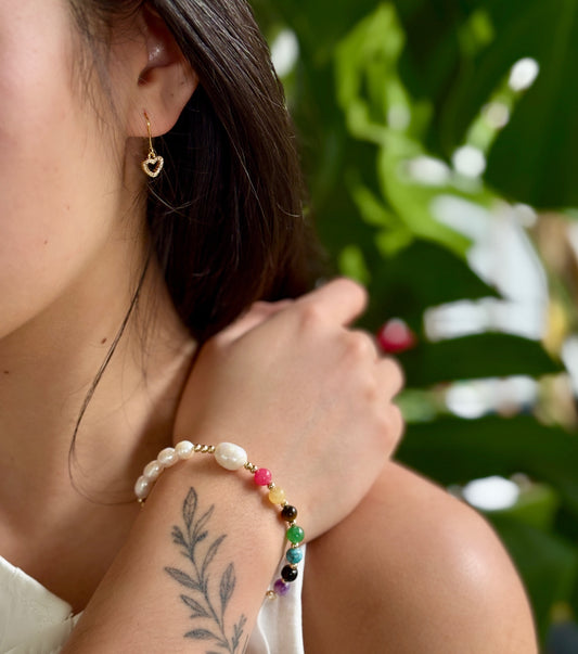 18ct Gold Plated Pearl Miyuki Rainbow Bracelet - Available In Silver