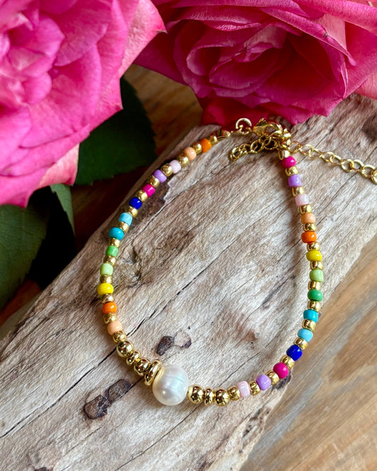 Regular price £24.99 GBPRegular priceUnit price / perSale price £24.99 GBP18ct Gold Plated Pearl Miyuki Rainbow Bracelet - Available In Silver