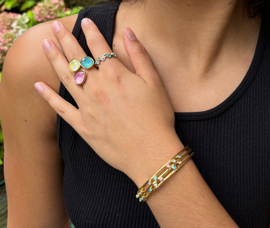 18ct Gold Plated Faceted Glass Adjustable Ring