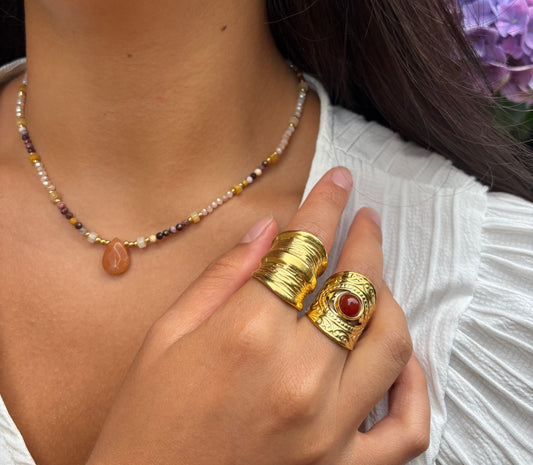 18ct Gold Plated Amethyst Sun Double Band Ring