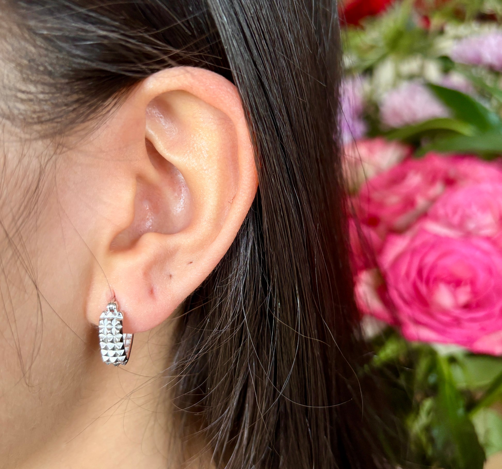 Designed to follow the natural curve of your ear, they offer a subtle pop of color with refined sparkle — perfect for day or night.
