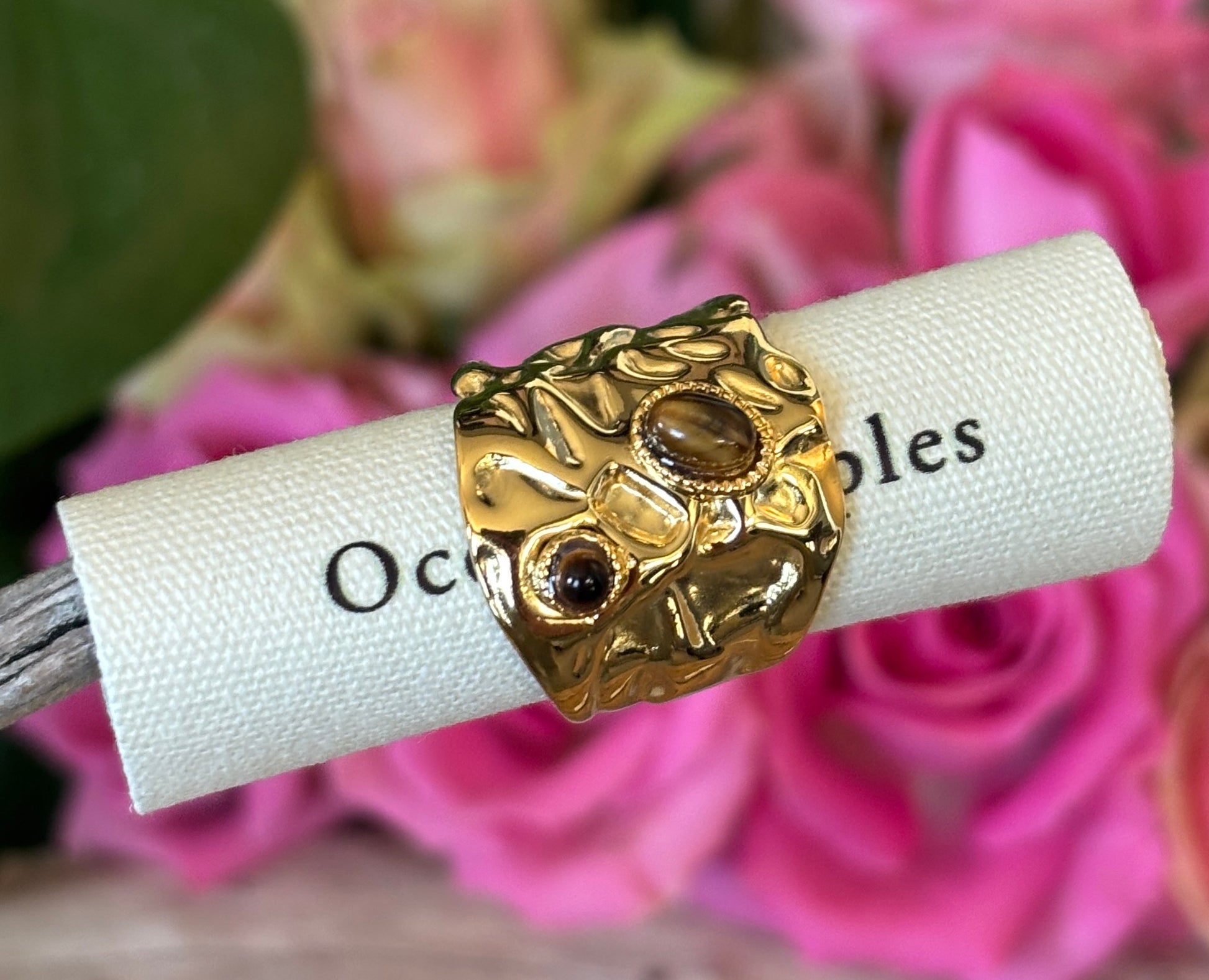 The rich golden-brown tones and handcrafted feel make this ring a grounding, statement piece for everyday wear.