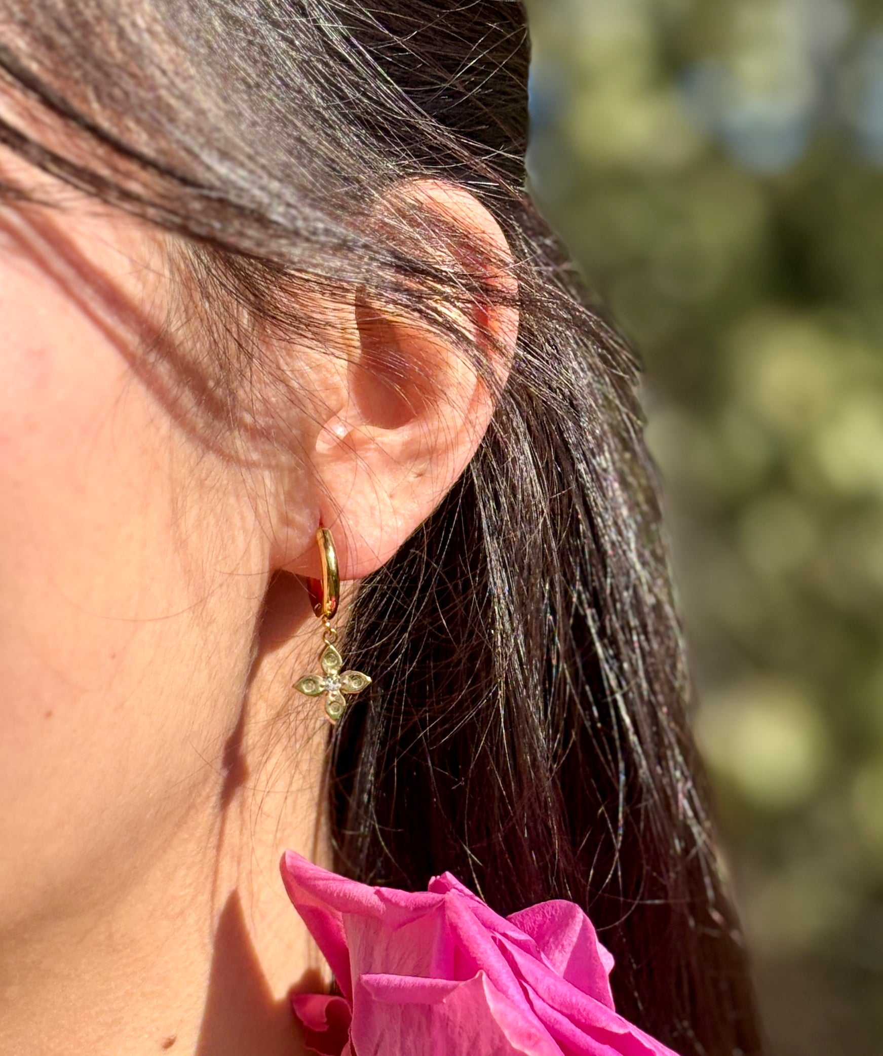 The huggie hoop design ensures a comfortable fit while adding elegance to the overall look.