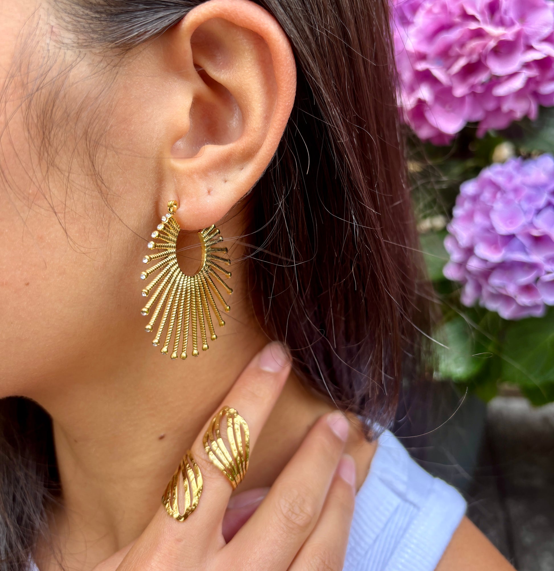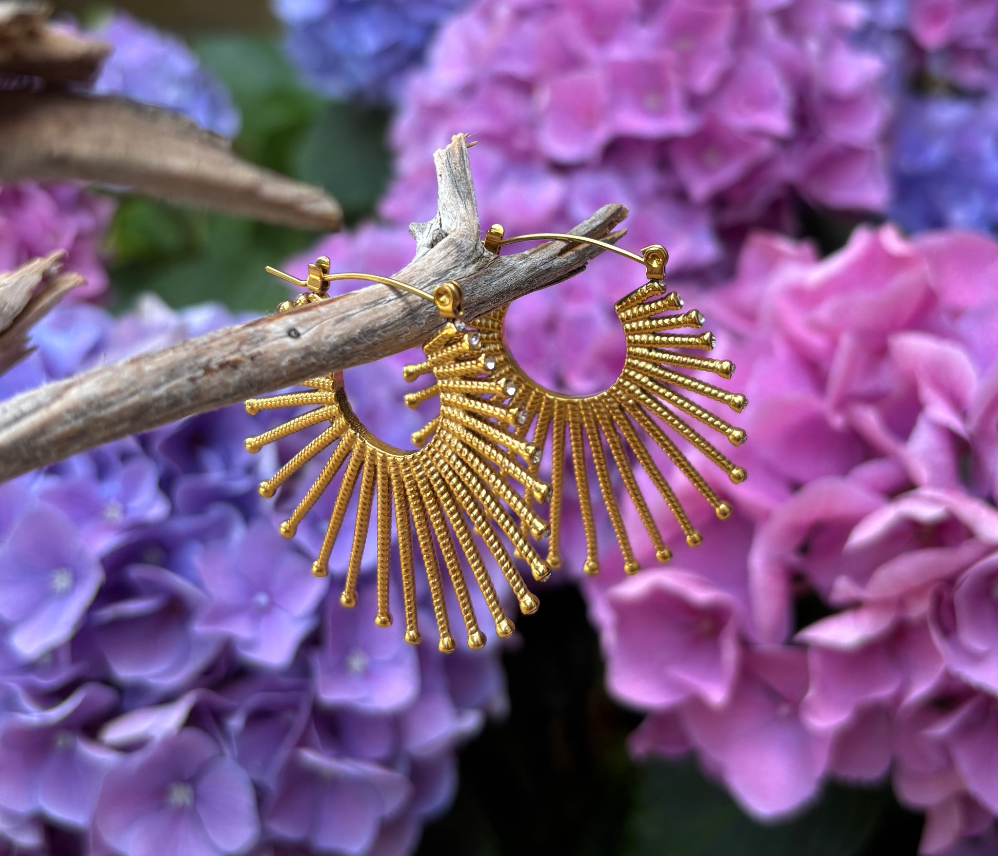 18ct Gold Plated Cubic Zirconia Fan Hoop Earrings