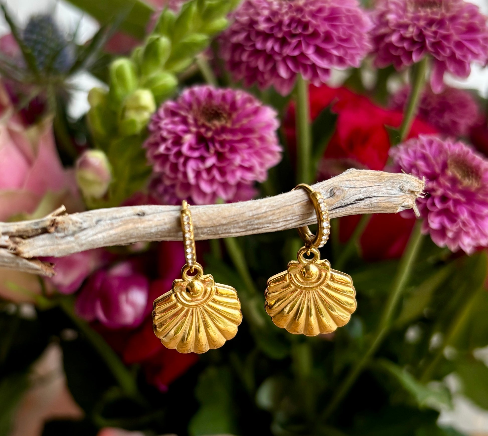 18ct Gold Plated Cubic Zirconia Shell Huggie Earrings