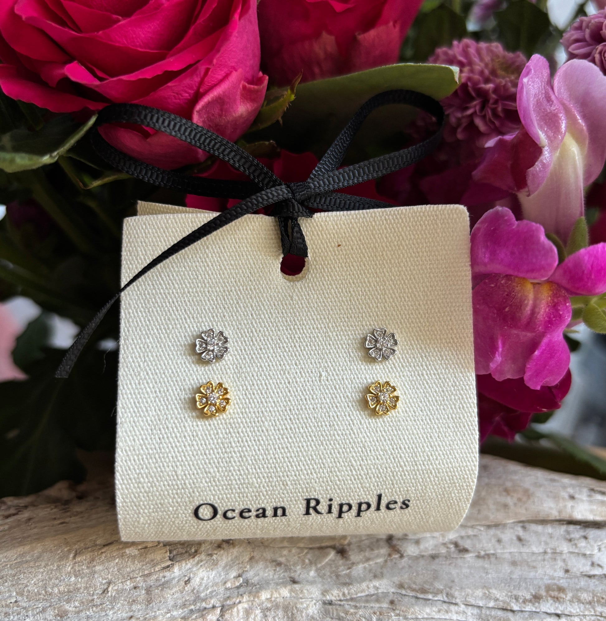 Delicate and timeless, these sterling silver flower studs are set with sparkling cubic zirconia for a subtle, elegant shine.